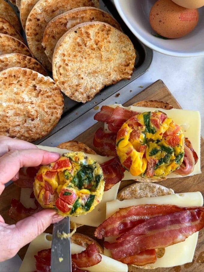 These egg and bacon breakfast muffins so easy to make, meal prep a batch of them to wrap individually and freeze until the next time you need a hot breakfast on the go.