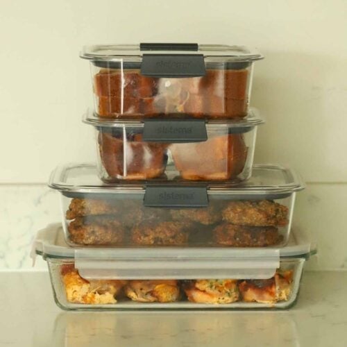 You can find links to all of the containers, utensils and general paraphernalia that I use to help me with meal prepping in my online shop, but my top favourites are:
