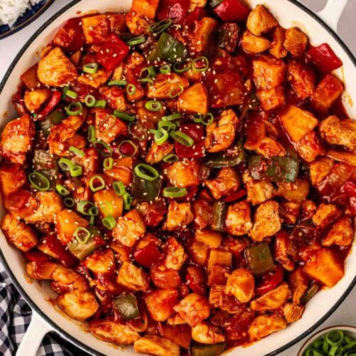- Water – You don’t need this if you’re cooking this Sweet and Sour Chicken in slow cooker, but you will for this hob version. About 100ml should do it but add a little more if you want it saucier!